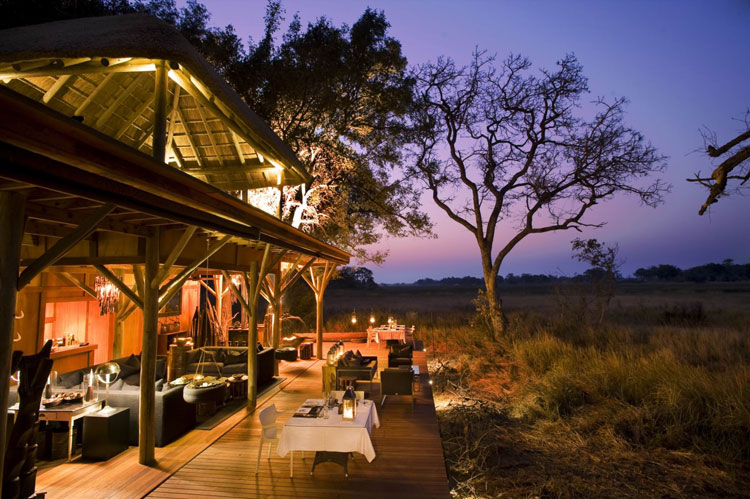 Все строения лоджа приподняты над землей. Смотровые площадки и гостевые зоны спроектированы так, что с них открывается панорамный вид Дельты Окаванго, при этом сами гости остаются в тени африканского леса. Отдохнуть после дневного сафари и скрыться от жары можно в гостиной или на террасе, сидя на мягких уютных диванчиках. В декоре интерьеров, помимо традиционной африканской атрибутики, можно заметить отслужившие предметы повседневной жизни (столики из жестяных банок, бутылки из разноцветного стекла, декоративные тумбочки из автомобильных шин). Это инновационное решение дизайнеров Xudum Lodge ни чуть не портит обстановку, а наоборот придает ей своеобразие и оригинальность.