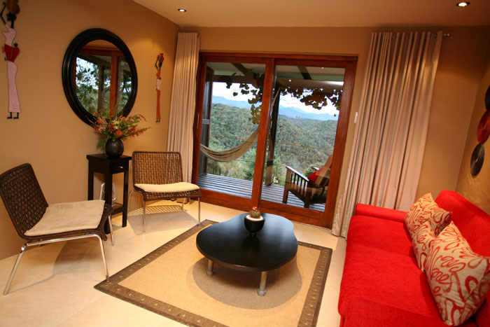 Отдельные коттеджи, расположенные в саду. В номере: спальная комната с кроватью king-size, ванная комната (ванна и душ), большая терраса с гамаком, гостиная. В декорации номеров использованы приглушенные коричневато-желтые и кремовые тона, а также африканские поделки. Вид на горы и леса.