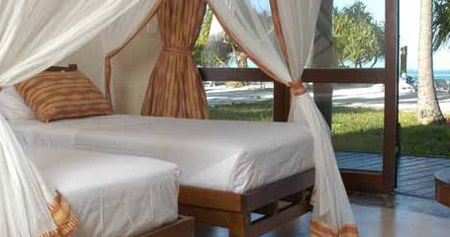 Номера и сьюты выполнены в форме традиционных африканских бунгало, живописно раскиданных в среди обширной пальмовой рощи; большие стеклянные двери ведут на балкон, откуда открывается изумительный вид на океан.