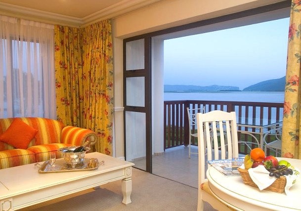 Номер с гостиной зоной с камином, одной большой кроватью, буфетом, патио. Номер расположен на первом этаже и имеет вид на лагуну. Также в номере есть кондиционер и вентилятор.