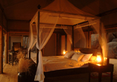 В каждом тенте: двухспальная кровать с балдахином и москитной сеткой, ванная, туалетный столик, веранда.