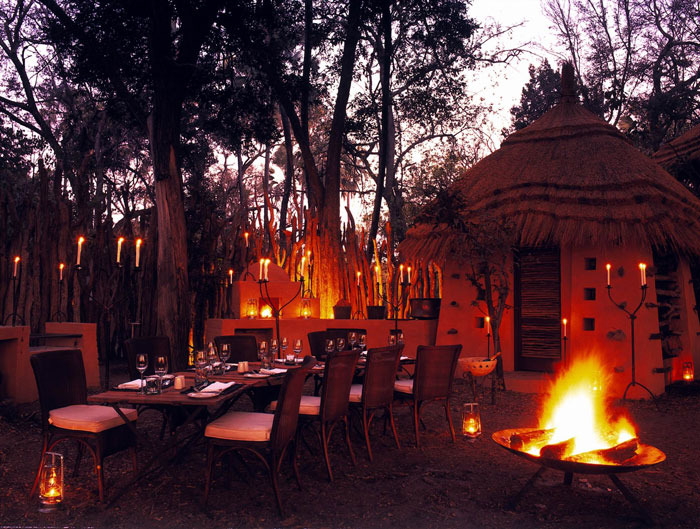 Африканские блюда готовятся и сервируются в традиционной африканской «боме» под открытым небом, прекрасным дополнением к ним служат вина из собственного погреба.