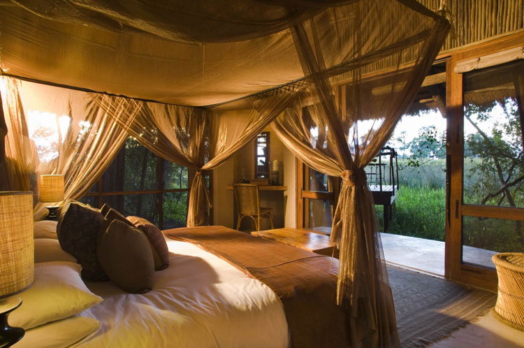 Коттеджи выполнены в традиционном африканском стиле. Собственная смотровая площадка, приподнятая над землей, идеальное место не только для осмотра окрестностей, но и для романтического ужина при свечах. Во внутреннем интерьере преобладают тона цвета охры. Большие окна коттеджей обеспечивают максимальный обзор окрестностей.