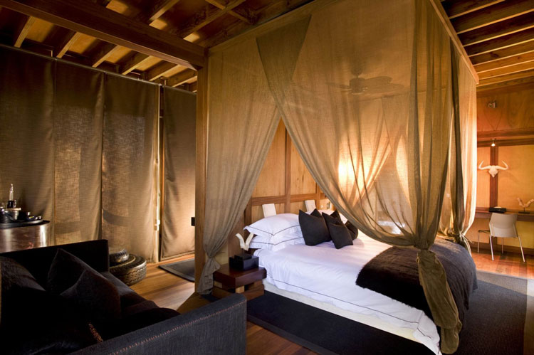 Все строения лоджа приподняты над землей. Смотровые площадки и гостевые зоны спроектированы так, что с них открывается панорамный вид Дельты Окаванго, при этом сами гости остаются в тени африканского леса. Отдохнуть после дневного сафари и скрыться от жары можно в гостиной или на террасе, сидя на мягких уютных диванчиках. В декоре интерьеров, помимо традиционной африканской атрибутики, можно заметить отслужившие предметы повседневной жизни (столики из жестяных банок, бутылки из разноцветного стекла, декоративные тумбочки из автомобильных шин). Это инновационное решение дизайнеров Xudum Lodge ни чуть не портит обстановку, а наоборот придает ей своеобразие и оригинальность.