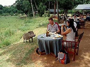 Уютный палаточный кемпинг, расположенный среди тропического леса. В каждой палатке имеется все необходимое для обеспечения максимально комфортного и уединенного отдыха. Прямо с собственной веранды можно наблюдать за животными, пасущимися перед кемпом. Вечером зажигаются керосиновые лампы, создающие необычайную атмосферу. Сидя перед костром, вы отведаете ужин приготовленный специально для вас.