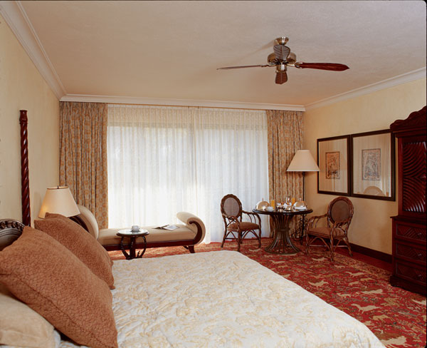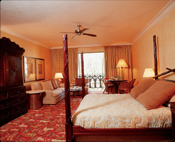 The Palace of the Lost City (Дворец Затерянного города) бесспорно является одним из лучших отелей комплекса Сан Сити. Его название точно передает саму суть – «Дворец». Во внешней архитектуре Дворца доминируют высокие башни, фигуры животных, выгравированные в камне и слоновьи бивни. Отель окружает 25 гектаров ботанических джунглей с многочисленными дорожками, каскадами, озерами, бассейнами и более полутора миллионами различных растений, деревьев и кустарников. Вся флора делится на 4 основных вида: орнаментовый лес с экзотическими фруктовыми деревьями; влажный тропический лес, сухой местный лес и пальмовый лес рядом с бассейном. Во внутреннем дворике отеля находится бронзовая модель самого известного слона Африки – Короля Крюгер Парка – Шаву, отлитая в его натуральную величину (4,5 метра). Внутри отель поражает еще больше. Когда попадаешь в его огромный холл с высокими потолками (25 метров), то действительно оказываешься во дворце. Инкрустированное дерево, дорогие восточные ковры, пальмы, фрески, фарфор, резная мебель – все очень дорогое и очень изысканное. В ресторанах - серебряные приборы, картины известных современных мастеров. Вся мебель в номерах - ручной работы, даже двери и ручки выполнены вручную. Полы устланы дорогими коврами, сотканными по специальным заказам.