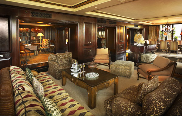 Роскошный многокомнатный сьют, подобающий для королевского отдыха, с насыщенными яркими интерьерами и стенами обшитыми панелями из красного дерева. В номере: две спальных комнаты с "королевскими" кроватями и диваном, просторная прихожая, гостиная и столовая зоны, рояль, бар, буфет, две ванных комнаты (с джакузи, душем), сауна, библиотека, гардеробная. Вид на бассейн. Предоставляются услуги дворецкого.