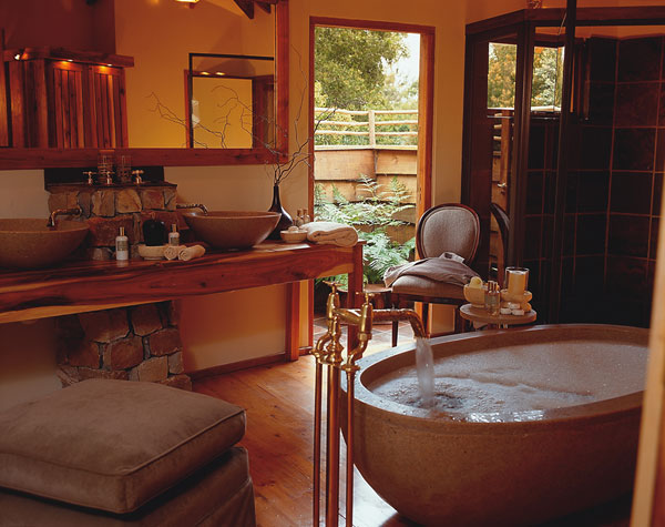 Укрытые кронами деревьев 10 роскошных сьютов, представляющие собой отдельно стоящие коттеджи на высоких сваях, являются воплощеним романтизма. Построенные с использованием камня, дерева и стекла они состоят из роскошной спальни, гостиной с камином, и просторной ванной комнаты. Внутреннее убранство идеально сочетает коричневые и серые тона со старинной мебелью и отделкой из камня.