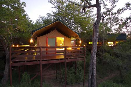 Традиционный палаточный стиль сафари-лоджей - вне времени и всегда актуален. Kapama Buffalo Camp поддерживает лучшие обычаи африканского сафари-лагеря. Палатки возвышаются на деревянных платформах над склоном небольшой реки, неспешные потоки которой привлекают на водопой множество антилоп. Buffalo Camp предлагает уникальную близость к дикой природе. Он идеален для того, чтобы изучить африканских животных в подлинном стиле сафари-лагерей прошлого века, не жертвуя комфортом. Каждая палатка (35 кв м) имеет все удобства - электричество, ванную комнату с душем, сейф, вентилятор, письменный стол, гардероб, фен, телефон и условия для приготовления чая/кофе. Палатки имеют просторную двухспальную кровать и рассчитаны максимум на двух человек. Кожаная отделка, африканские росписи на покрывалах и подушках придают обстановке африканский колорит. Фонари, а не электрические огни, горят ночью под деревьями, создавая особую интимную обстановку, присущую этому лагерю. Приподнятые над землей деревянные дорожки соединяют палатки между собой и с расположенными на берегу реки общими зонами: баром, рестораном, гостиной и террасой, бассейном, сувенирным магазином и бомой. Благодаря небольшому количеству гостей в этом лодже исключительное внимание обращено персональному обслуживанию. Buffalo Camp - подлинный способ получить незабываемое впечатление от африканской дикой природы.