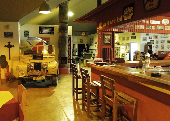 Благодаря своему необычному декору, Cañon Roadhouse приобрел своего рода культовый статус в Намибии: старые добрые времена начала эпохи автомобилей отражены в интерьере ресторана и бара. Традиционная местная еда подается вам среди старинных кузовов, искуссно расставленных вокруг.