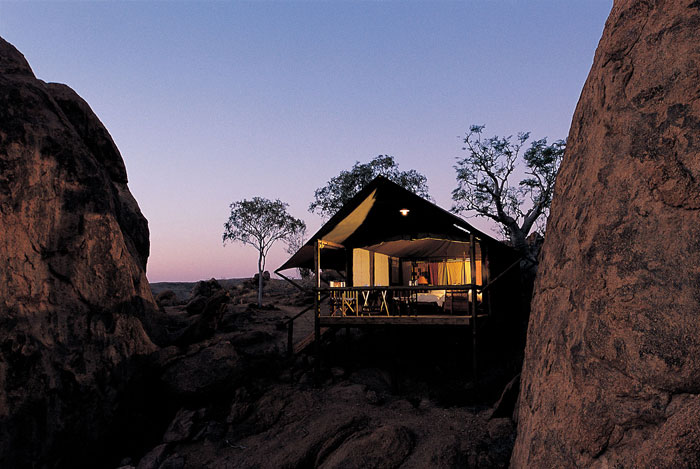 Mowani Mountain Camp – уникальный кэмп в оригинальном архитектурном стиле, отличающийся своими куполоподобными крышами из тростника, словно зеркальное отражение гранитных валунов, среди которых построен кэмп. Название происходит от слова M'Wane, означающем «Божье место» и указывающем на тишину и покой этого места.