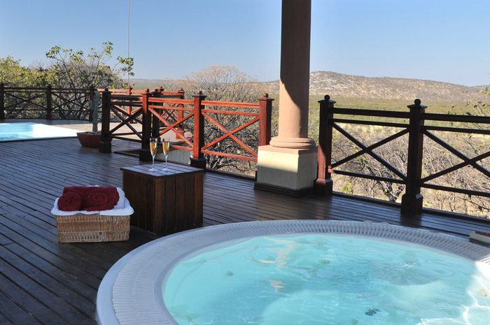 Epacha Game Lodge находится на территории частного заповедника Эпача, к югу от Национального Парка Этоша. Это роскошный лодж в колониальном викторианском стиле, декорированный кожаной честерфилдской мебелью и охотничьими трофеями. Epacha Game Lodge – не просто сафари лодж, а также и центр релаксации с полностью оборудованным СПА – салоном, бильярдной и сигарной комнатой. В СПА центре к услугам гостей – сауна, джакузи, тренажерный зал, грязевые ванны, бассейн, Талассо терапия, процедуры по уходу за лицом и телом – и все это в одном из самых красивейших мест южной африки.