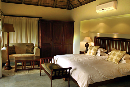 Сьюты соединены между собой и общими зонами деревянными дорожками. Каждый сьют имеет собственную просторную веранду с небольшим бассейном, откуда открывается прекрасный вид на окружающий буш, гостиную с большим камином, кондиционер, вентилятор. Все кровати (king или twin) имеют противомоскитный полог, а лежа в романтичной ванне-джакузи, можно любоваться открывающимися живописными видами вдоль русла реки Nwatswitswontо, на берегу которой расположен лодж. Мерцающий свет ламп, прекрасная мебель и интерьеры, натуральные материалы – все эти сопутствующие детали гарантируют, что Вы никогда не забудете свой «первый вкус» африканского сафари.