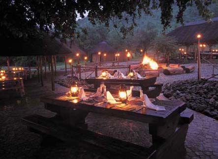 Здания с тростниковой крышей расположены в форме подковы и окружены водоемом, в котором водятся бегемоты. На территории заповедника обитает множество различных птиц (более 360 разновидностей) и животных, включая "большую пятерку".