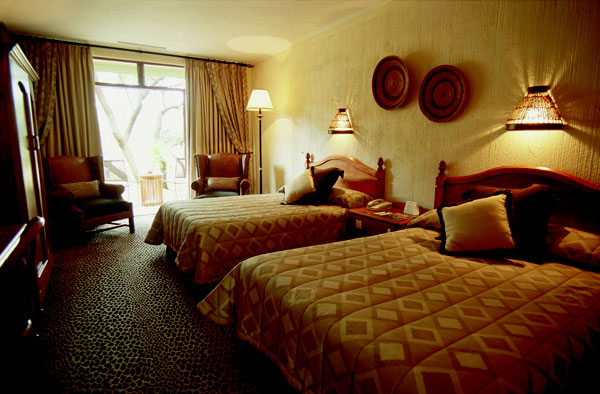 100 номеров с прекрасным видом на окружающий лодж буш и водоем c бегемотами.