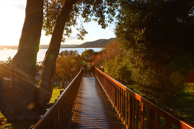 Гости располагаются в отдельных одно- или двухэтажных коттеджах, в каждом из которых есть комфортабельная гостиная с камином, оборудованная кухня, ванная комната, большая веранда. Часть коттеджей имеет вид на лагуну, часть - на сад.