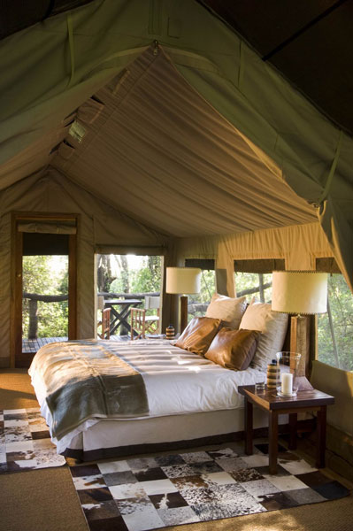 Палатки оформлены в традиционном восточно-африканском стиле и установлены на приподнятые над землей деревянные платформы. Теплые бежевые и шоколадные тона интерьеров, элегантная деревянная мебель, коврики из воловьей кожи, африканские элементы декора, создают атмосферу роскоши и уюта.