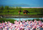 После завтрака выселение из отеля и переезд в Национальный Парк Озера Накуру. Дорога займет около пяти часов и пройдет через Найроби, далее по одному из живописнейших мест – кенийскому нагорью сквозь пышную растительность деревьев и кофейных плантаций, через Великую Рифтовую долину. Во второй половине дня прибытие к озеру Накуру, размещение в лодже на территории парка. Обед. Во второй половине дня вечернее сафари до заката.